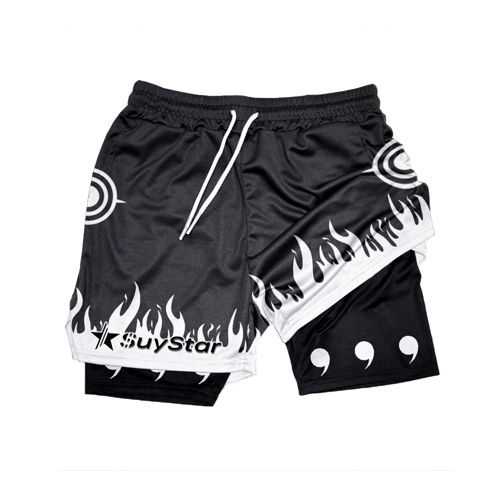 Men's Anime Print Drawstring Double Layer Shorts