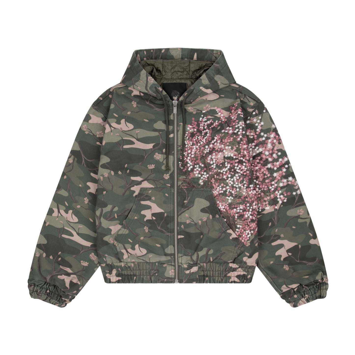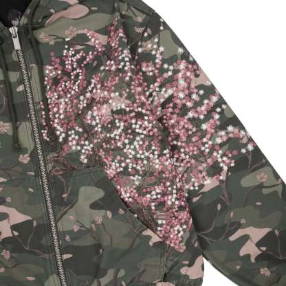 14,5oz denim / 100% cotton / camo printed fabric / embroidery on front and sleeve / with YKK zipper / fits true to size