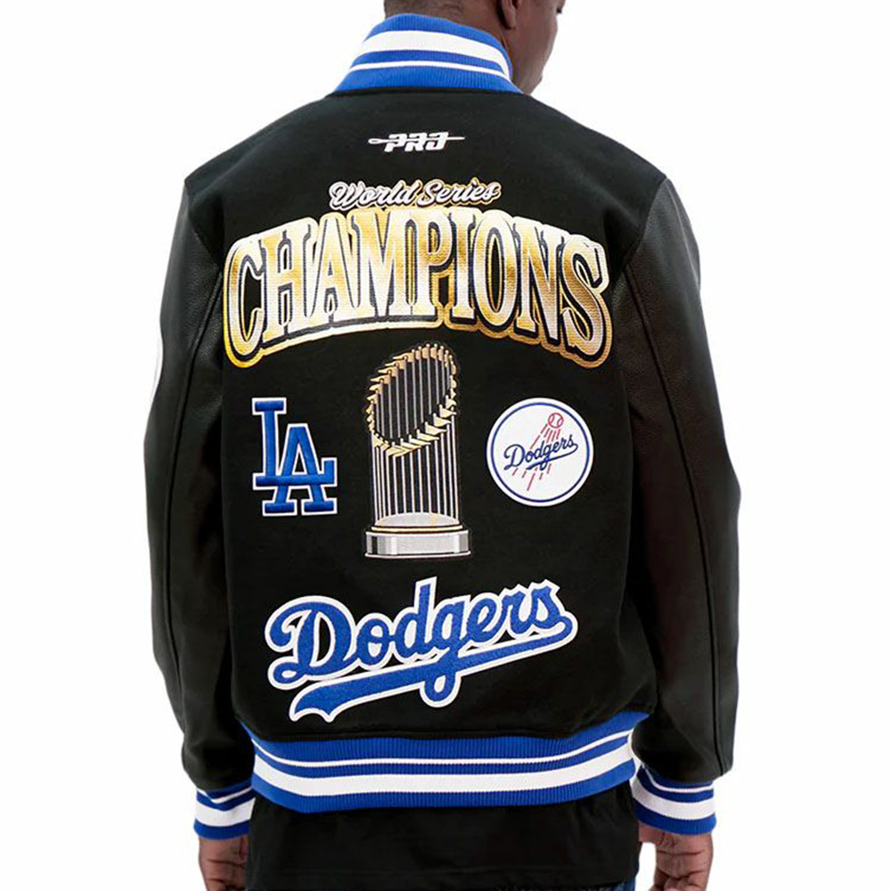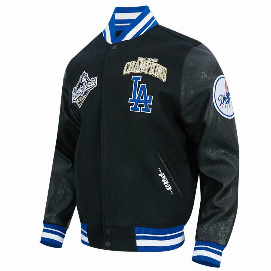Champion Printed Leather Sleeves Splicing Baseball Jacket