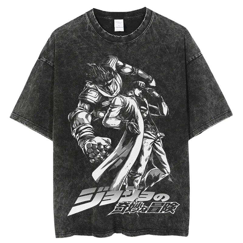 JoJo's Bizarre Adventure Power Evolution Vintage T-Shirt. Premium 100% cotton tee featuring a bold, vintage-inspired Jojo's Bizarre Adventure graphic. Oversized fit for a relaxed, streetwear look. Soft, breathable fabric. Ribbed crew neck. Double-stitched sleeves and hem. Sizes S-3XL. Machine wash cold, inside out. Perfect forJojo's Bizarre Adventure fans and casual anime style. Durable print stays vibrant. Ideal for everyday wear or cosplay events.