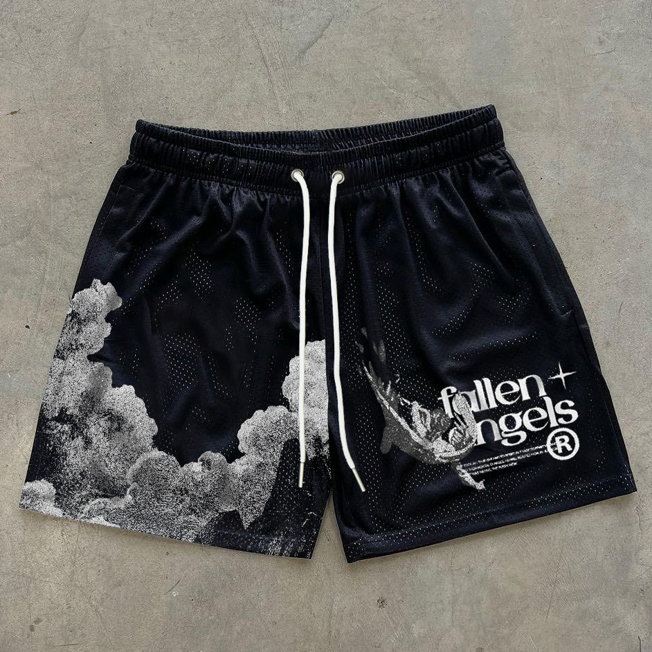 Relaxed Fallen Angel Print Stretch Shorts