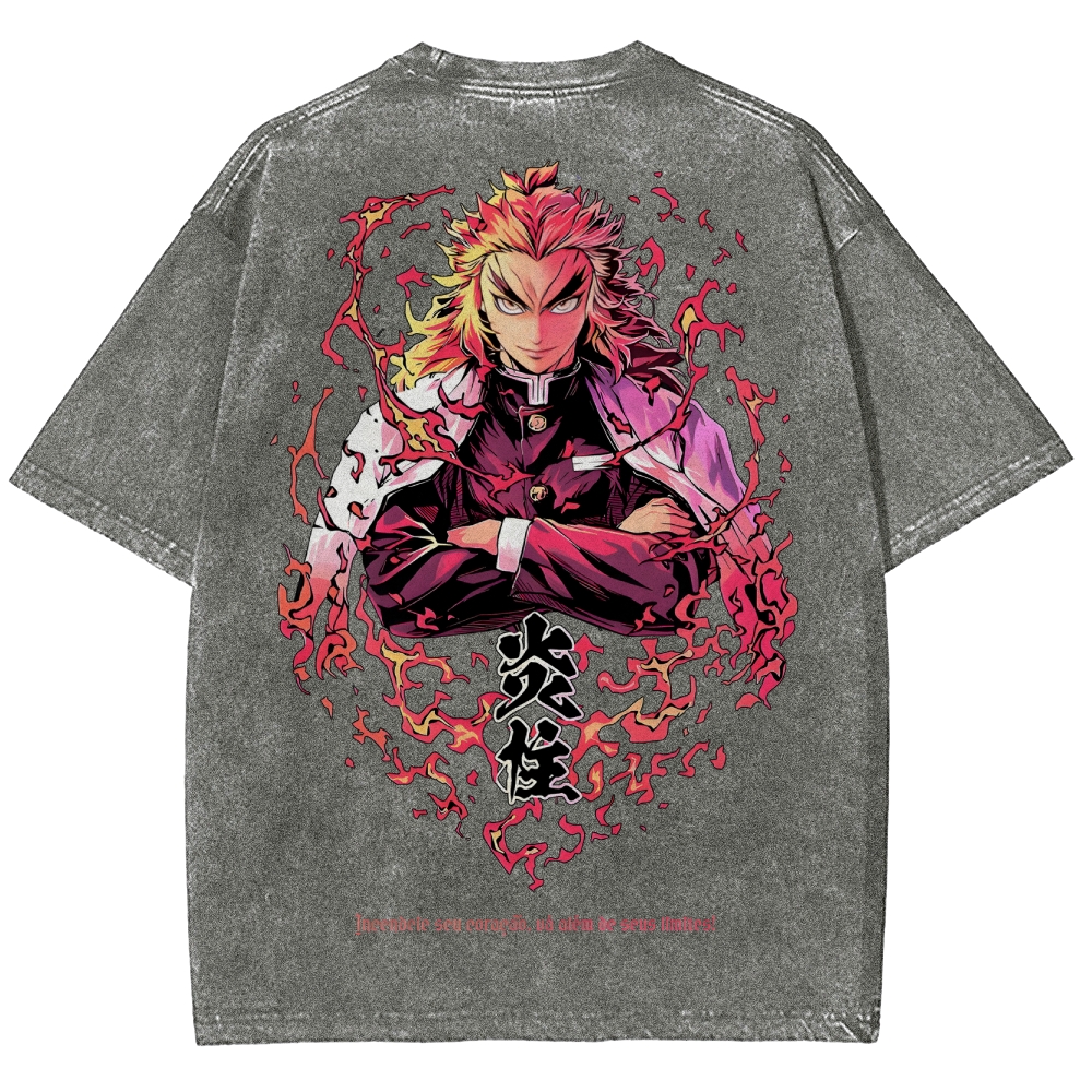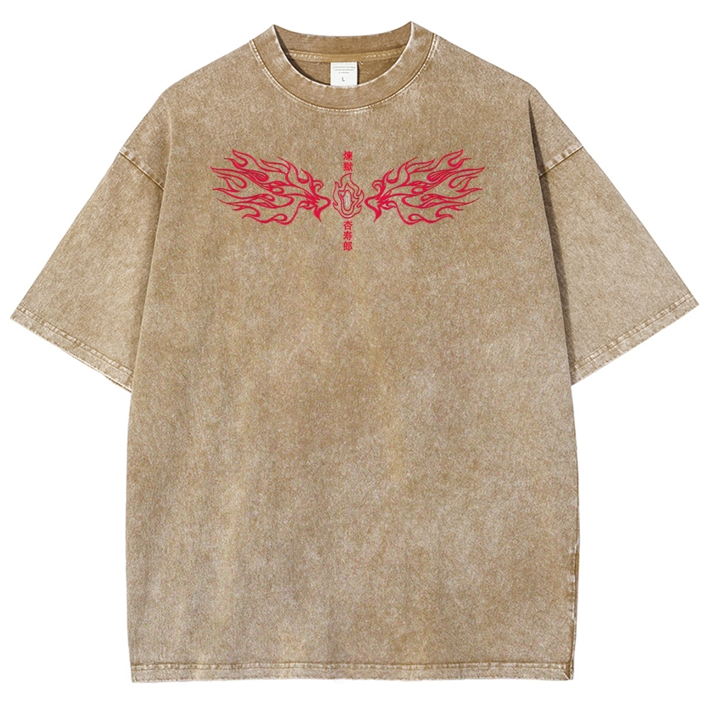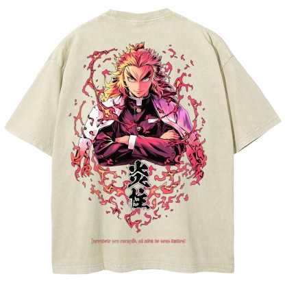 Demon Slayer Rengoku Kyoujurou Unisex Fit Washed T-Shirt 2504004054