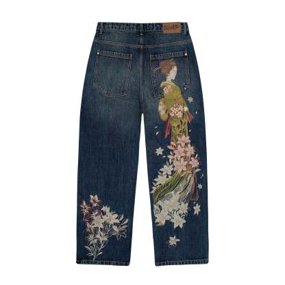 14oz denim / 100% cotton / embroidery on back / debossed printed leather patch / effect washing (wash inside out) / straight fit / fits true to size