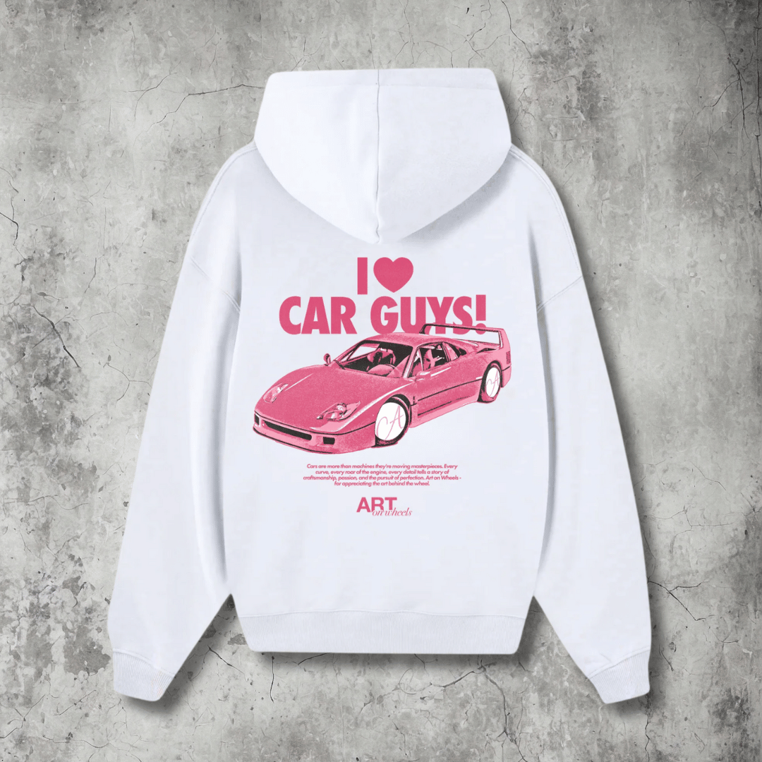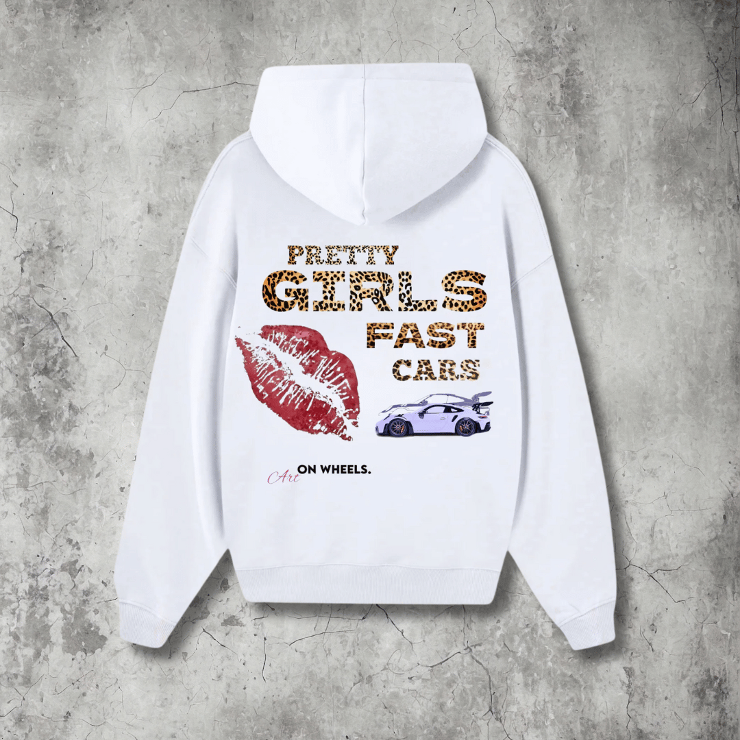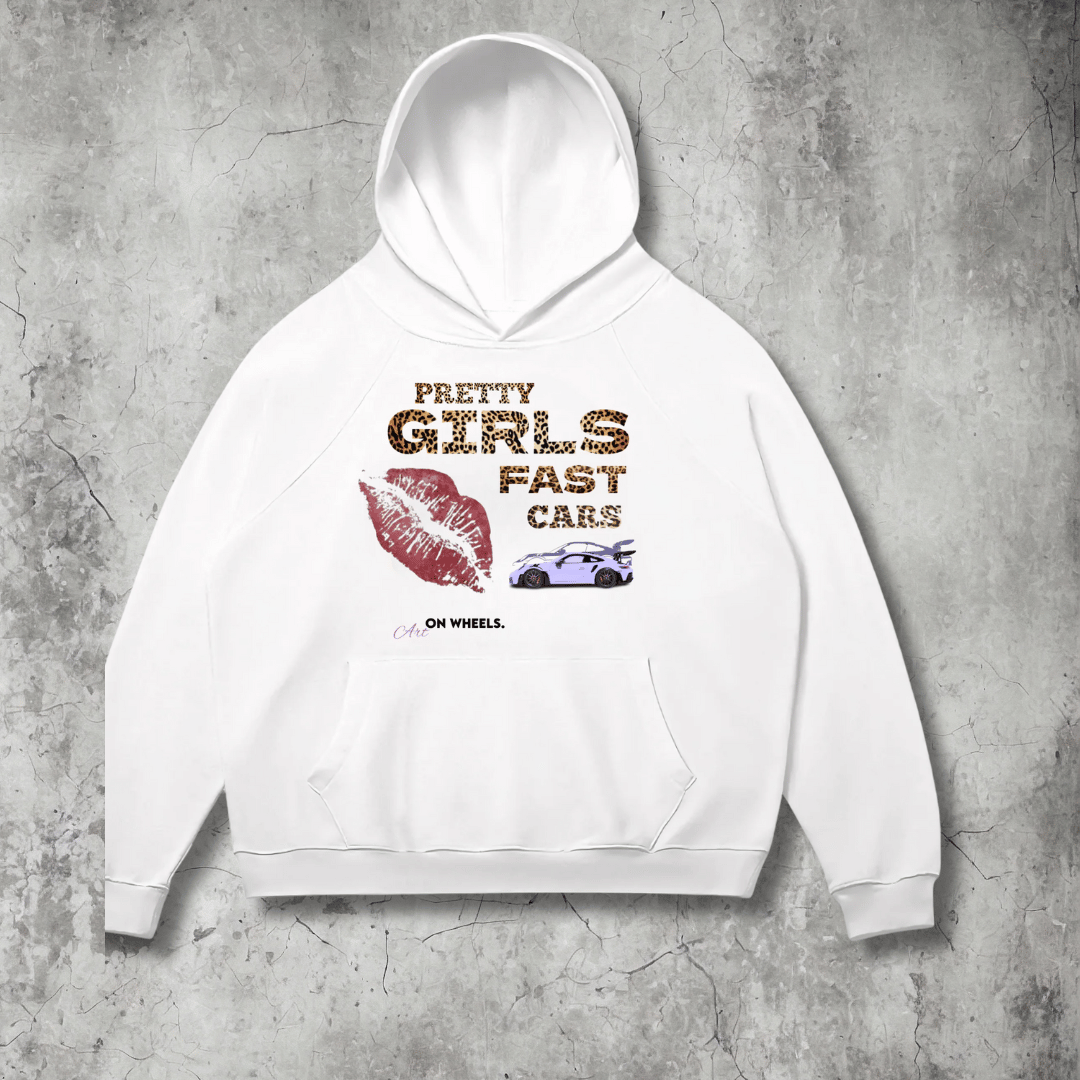 Pretty Girls Fast Cars Front Print Hoodie (White)