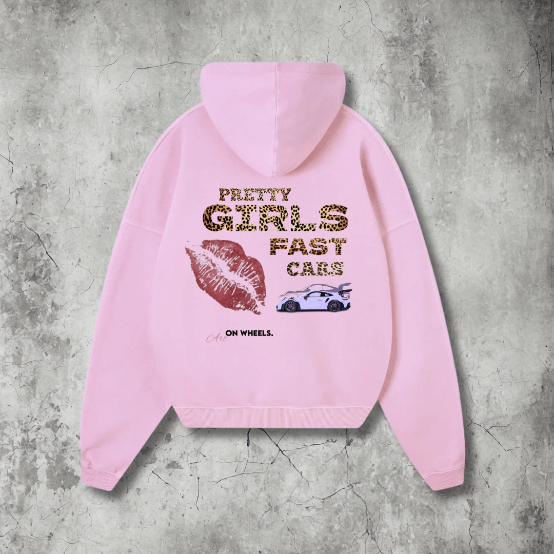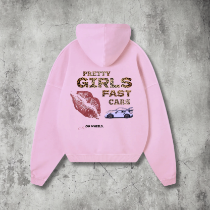 Pretty Girls Fast Cars Back Print Hoodie (Pink)
