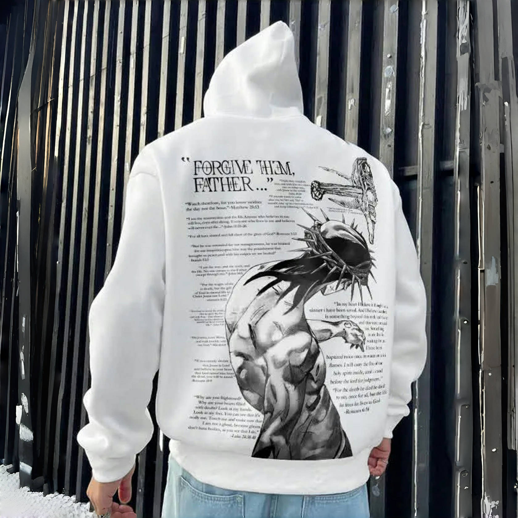 Unique Design: The Forgive Them Father Bible Verses Print Pocket Hoodie combines fashion and faith with its distinctive design featuring carefully selected Bible verses. It's not just a piece of clothing; it's a statement of faith and a reminder of forgiveness.