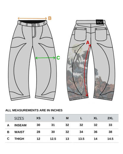 Back Zombie Artwork (1,000,000+ stitches)Custom Leather Tab & Panelling100% Organic Cotton (Baggy Fit)