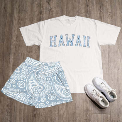 Hawall Print T-Shirt Shorts Two-Piece Set