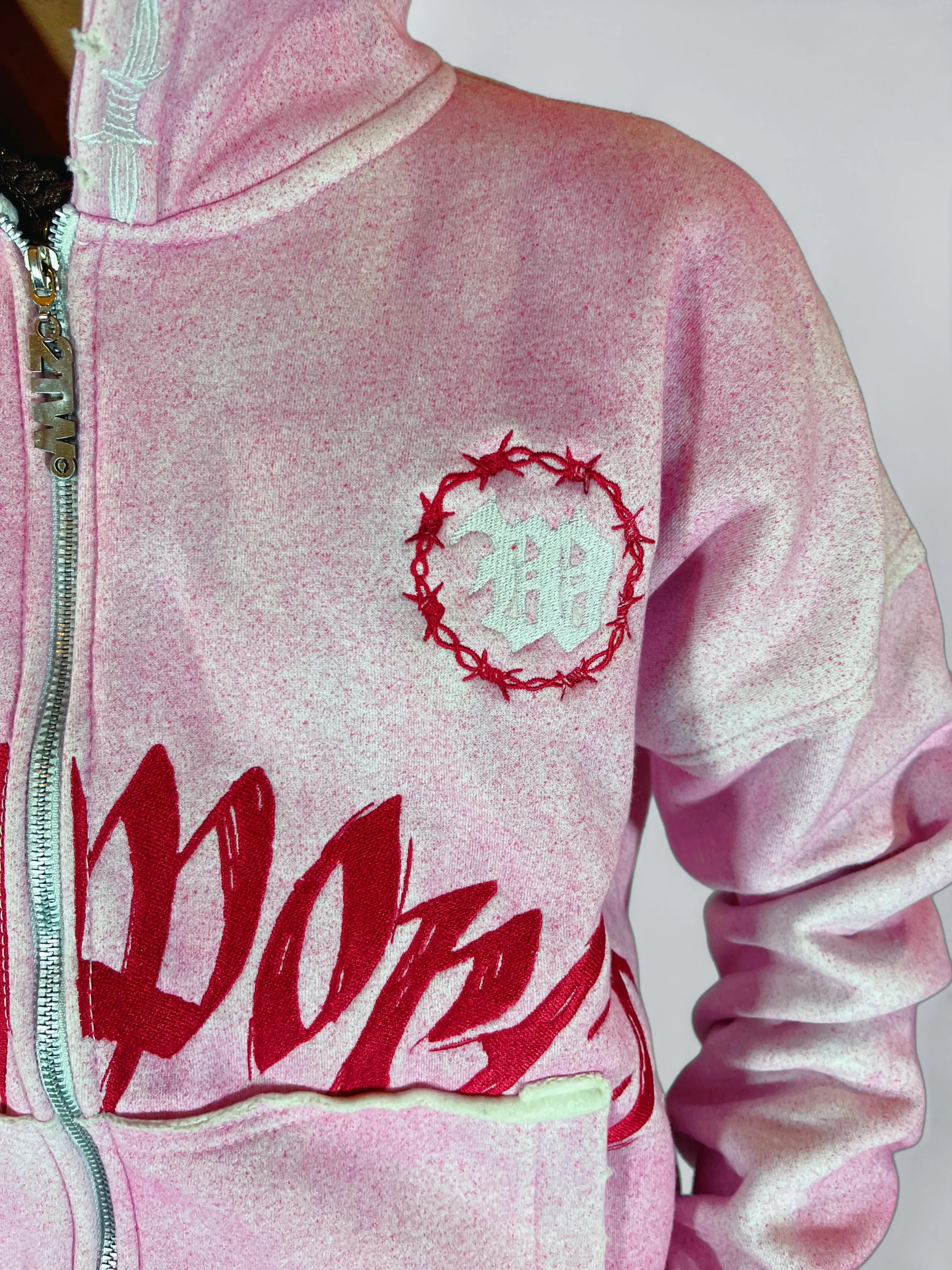 Features: Satin-woven labels, hand distressing