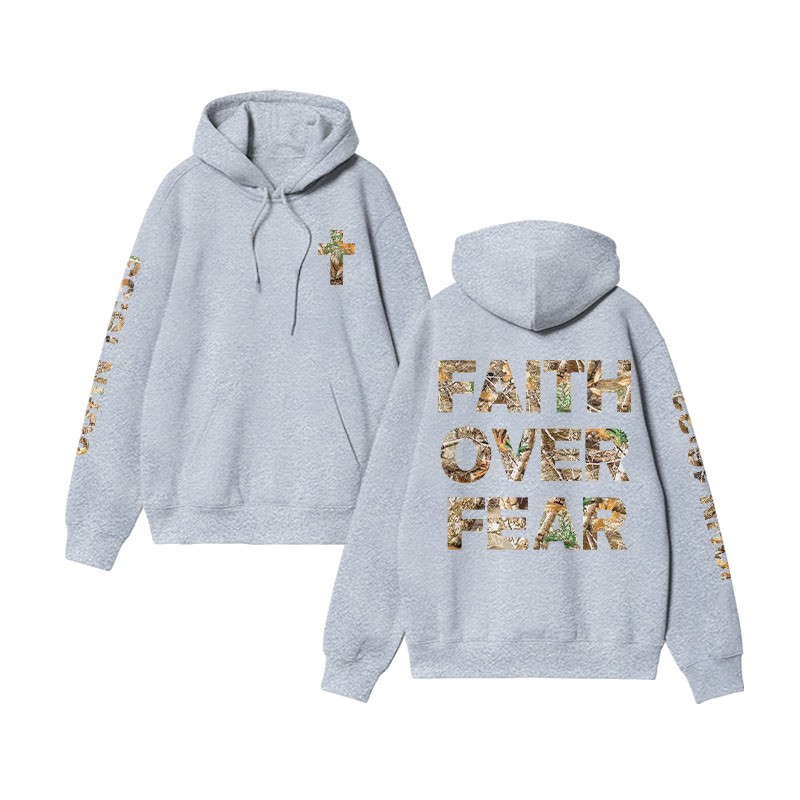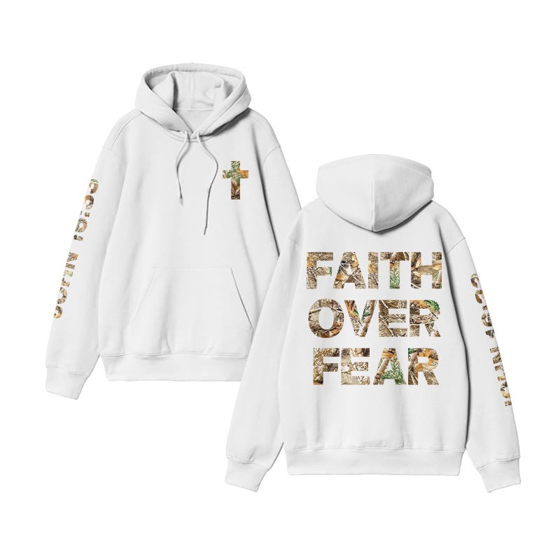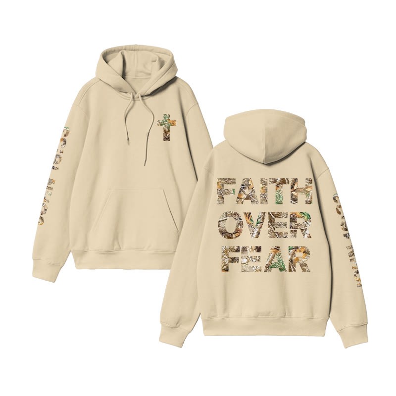 Unisex Faith Over Fear Dead Leaves Camouflage Print Hoodie