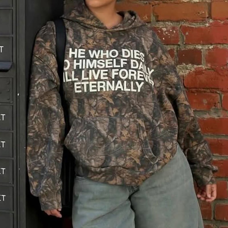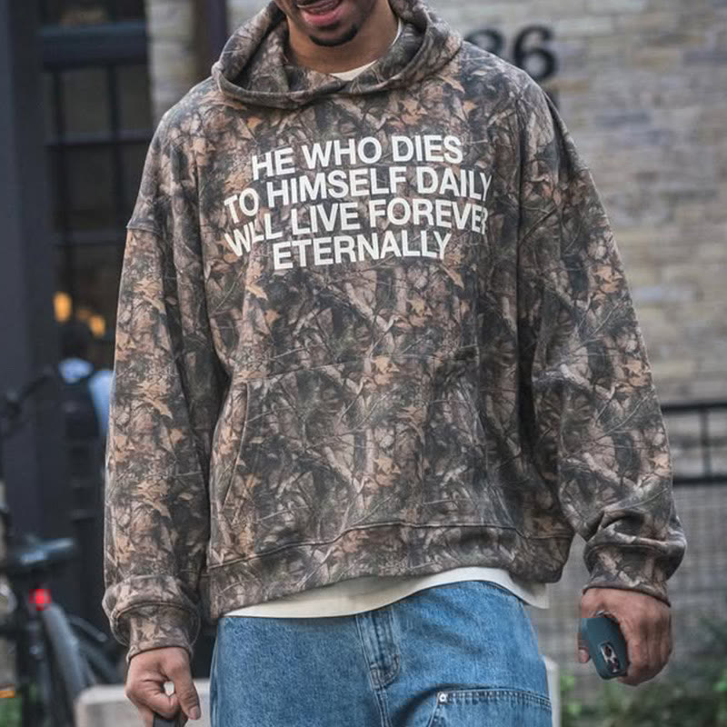 Unisex Will Live Forever Dead Leaves Camouflage Print Hoodie