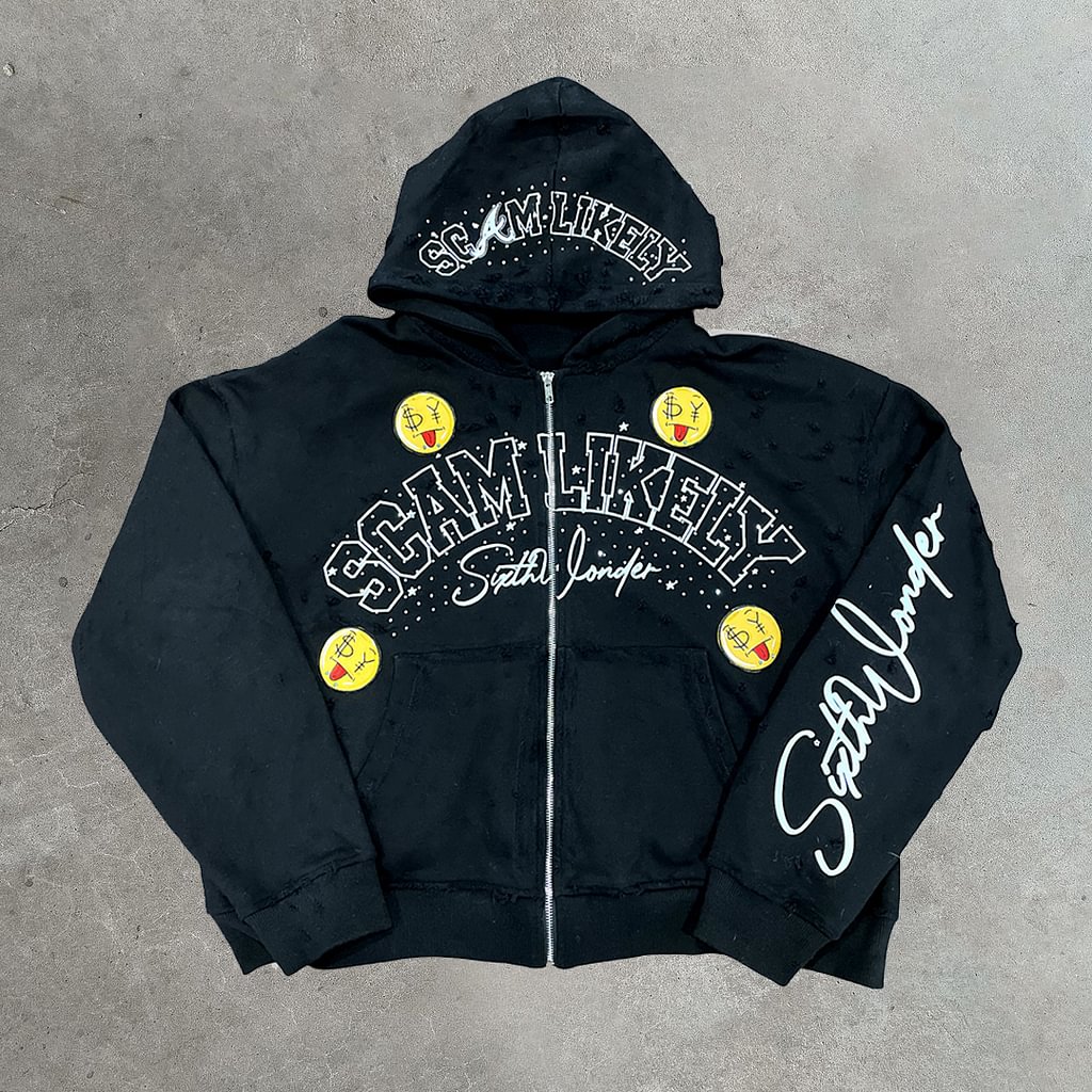 Vintage Scan Likely Graphic Hip Hop Oversized Zip Up Hoodie